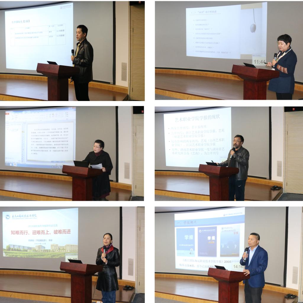 学术报告交流环节,各高职高专学报编辑各抒己见,就如何提高办刊质量踊跃发言,宁波职业技术学院、温州科技职业学院、湖州职业技术学院、浙江艺术职业学院、义乌工商职业技术学院,以及我校代表等对学报研究会的工作进行了高度评价,对各自的办刊特色、历程、经验与做法进行阐述分享。