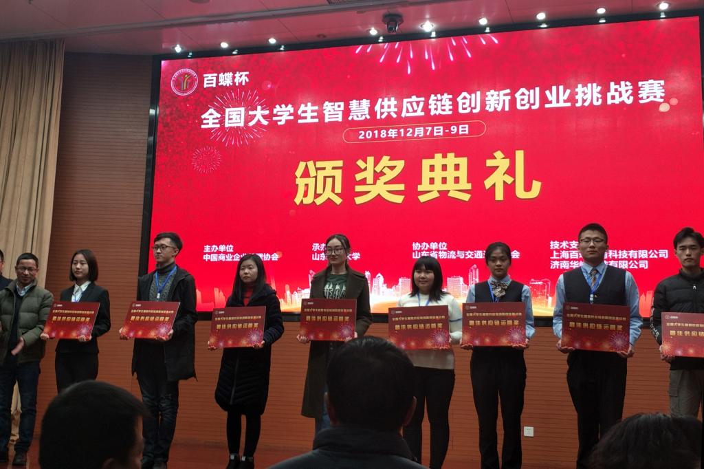 12月7日-9日,2018年“百蝶杯”全国大学生智慧供应链创新创业挑战赛全国总决赛在山东财经大学举行。由我校港口管理学院靳荣利和陈艳玲老师指导的2支团队顺利晋级参赛,最终以高职组总分第一和第二的成绩荣获全国大学生智慧供应链创新创业挑战赛特等奖两项,最佳供应链运营奖两项,最佳零售商创新创业奖一项,最佳分销商创新创业奖一项,最佳组织奖一项。