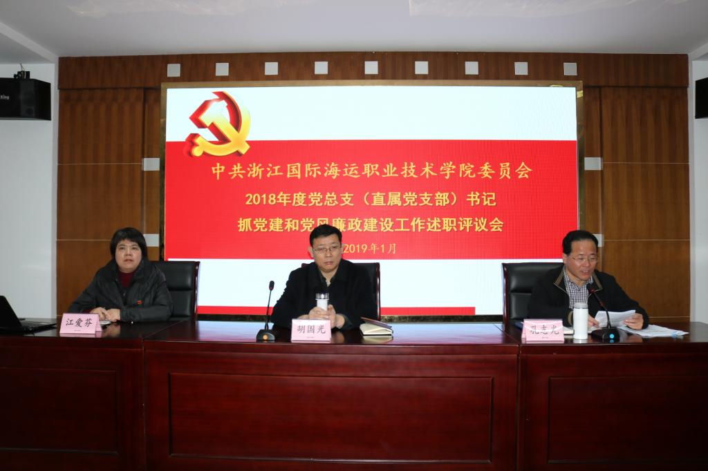 党委副书记胡国光对各党总支(直属党支部)书记的述职报告进行了现场点评。他充分肯定了大家在2018年党建与党风廉政建设工作中取得的成绩,指出了当前工作中存在的问题,并就进一步强化基层党组织抓党建工作提出新要求。他指出,各党总支(直属党支部)书记要以这次述职会为新起点,抓好工作落实,不断提升基层党组织建设质量,以高质量党建引领保障学校高质量发展。