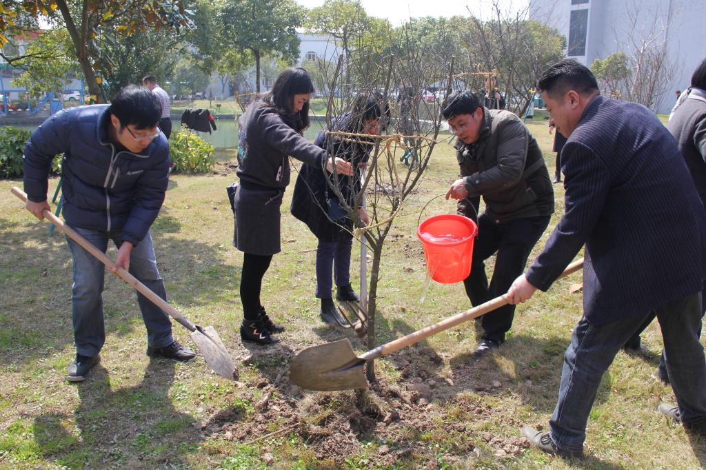 活动开始后,大家三五成群分工合作,有人负责挖坑,有人负责栽树,有人负责浇水,过程井然有序,气氛热烈活跃,虽然脚上、裤腿上都沾满了泥巴,但劳动的快乐绽放在幸福的脸上,看着一棵棵刚栽下的树苗焕发着新的生机,大家沉浸在鲜绿的愉悦之中,默默祝愿这些树苗可以茁壮成长,为我校增添新的风景。(图文/金巧娟)