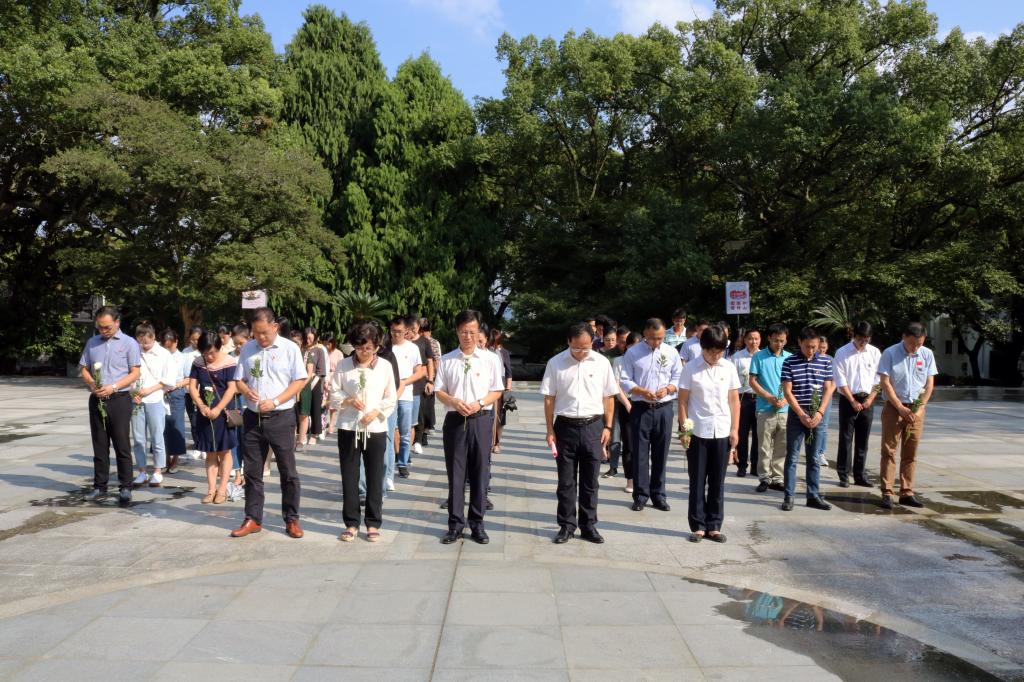 中华人民共和国成立70周年来临之际,为弘扬爱国主义,传承革命精神,深入推进“不忘初心、牢记使命”主题教育,9月28日下午,学校组织校领导和72名教职工党员代表前往舟山烈士陵园开展缅怀祭奠革命先烈活动。活动由校党委委员、组织部(人事处)部长(处长)方晓红主持。