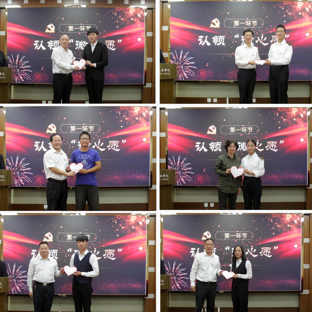 闭幕式分为两个阶段。第一阶段为“点亮微心愿、共筑中国梦”微心愿认领活动。校领导和各基层党组织书记积极认领了前期通过走访、面谈等形式广泛征集的33条微心愿,并在闭幕式与结对学生举行认领仪式。