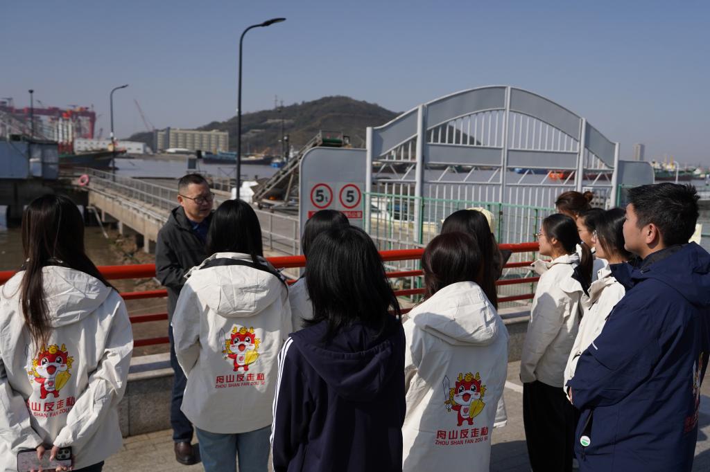 323日上午,远洋渔业码头和沈家门渔港博物馆成为实践第三站。在码头旁,孙峰老师介绍了远洋鱿鱼运输船走私的生动案例。随后前往沈家门渔港博物馆,了解渔民生产、生活习俗及渔都沈家门的形成、发展和解放后的大变化。最后社团沿北安路、中大街开展流动宣传,向商户、路人发放宣传册。