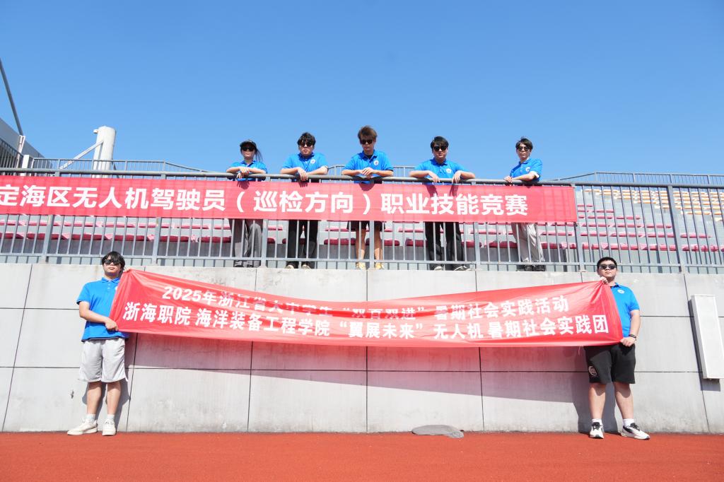 6月28日,定海区首届无人机驾驶员职业技能竞赛在我校举行。实践团全程参与赛事志愿服务,承担了设备调试、赛场保障、成绩统计等工作,以专业的服务赢得了主办方和参赛选手的一致好评。这次志愿服务不仅让团队成员巩固了专业知识,也让他们更深刻地理解了无人机行业的技能需求。此次活动也为学生提供了对接行业需求的实践平台。