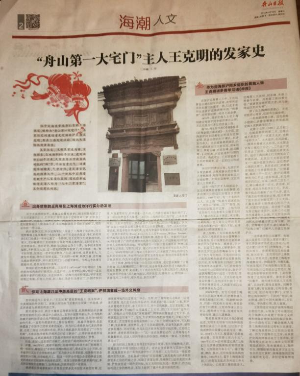 《舟山日报》:“舟山第一大宅门”主人王克明的发家史