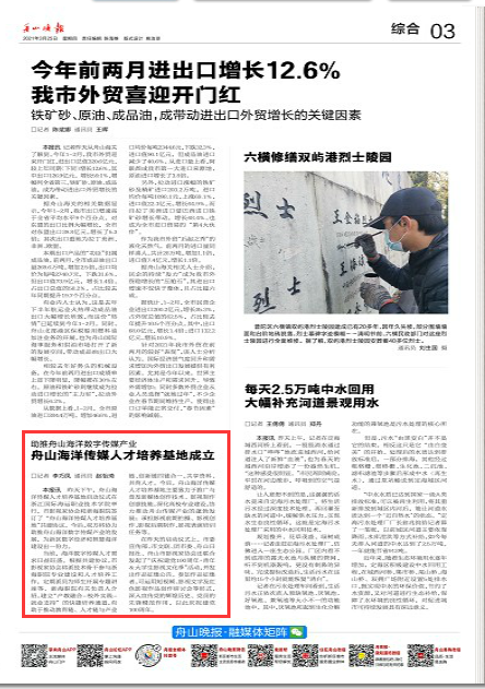 《舟山晚报》:助推舟山海洋数字传媒产业 舟山海洋传媒人才培养基地成立
