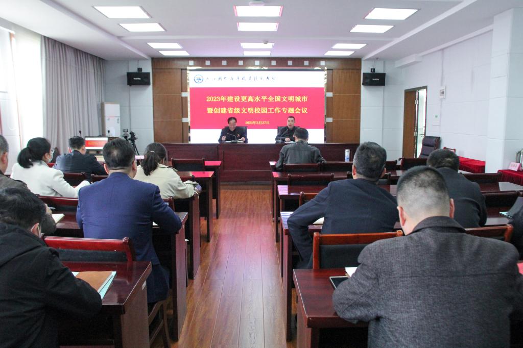 为落实近期全市教育系统建设更高水平全国文明城市工作专题会议精神,进一步巩固提升学校建设文明城市和创建省级文明校园工作成效,3月27日,学校在行政楼401会议室召开了2023年建设更高水平全国文明城市暨创建省级文明校园工作专题会议。校党委副书记孔志光和各点位长参加会议。会议由党委委员、宣传部(统战部)部长陈永芳主持。
