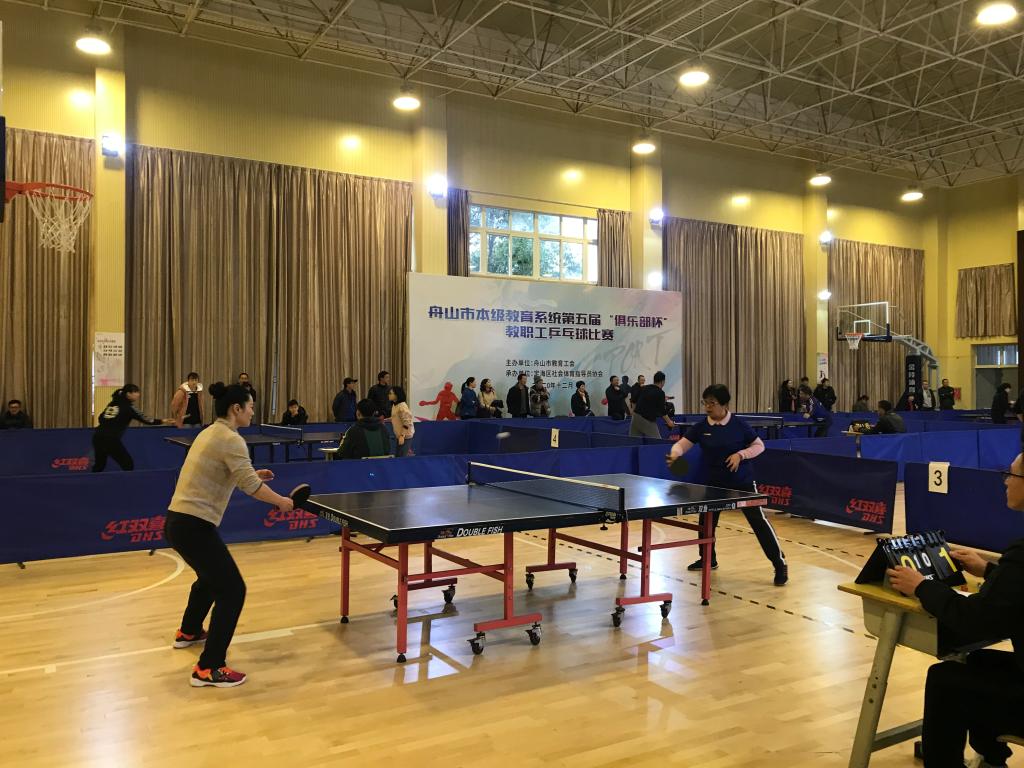 为进一步丰富全市教育系统教职工的精神文化生活,促进教职工的身心健康,增强教育系统的凝聚力和向心力,充分展示广大教职工团结奋进的新时代风采,舟山市教育工会在定海区檀枫小学成功举行2020年全市教育系统第五届“俱乐部杯”教职工乒乓球比赛,我校工会积极组队参加。