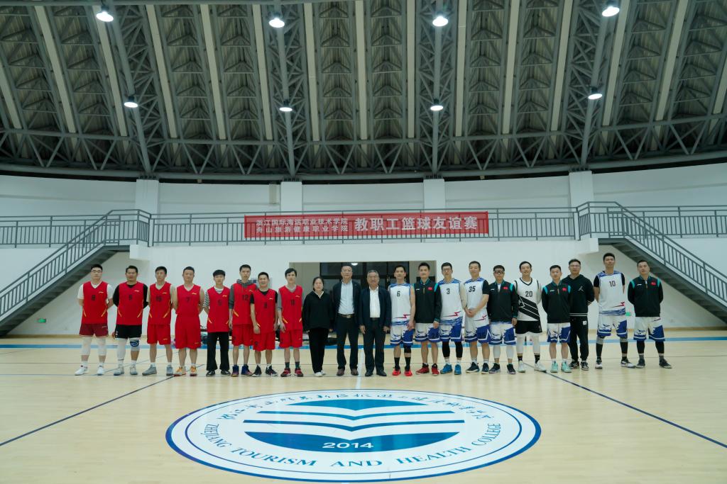 4月17日晚,我校工会与浙江舟山群岛新区旅游与健康职业学院工会共同组织的教职工篮球友谊赛在旅健院体育馆举行。舟旅健院校长郑能波、工会副主席叶勇敏,我校工会副主席蔡义雄和旅健院部分师生代表观看了比赛。