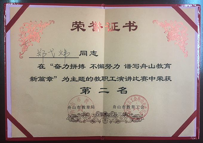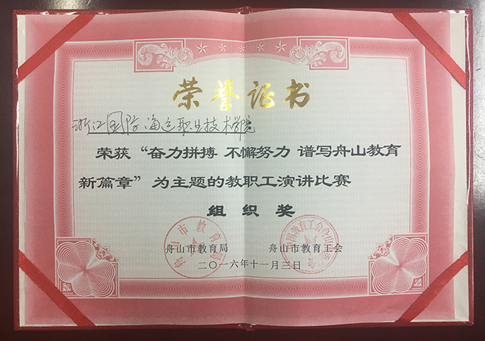 我校海洋旅游学院郑弋炜老师代表学校参加。她围绕“爱是一种力量”--用爱谱写舟山职业教育新篇章为主题,结合我校教育教学工作实际,畅谈践行新区教育教学工作的责任和奉献情怀,精彩的演讲博得了评委的认可和现场观众的共鸣。最终,郑弋炜老师荣获了大赛二等奖。