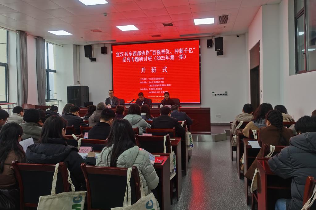 为认真贯彻落实习近平总书记关于深化东西部协作重要指示精神,认真履行我校与宣汉县合作协议内容,助力宣汉县“牛药菌茶果”产业高质量发展,筑牢特色产业人才支撑,3月10日-14日,宣汉县东西部协作“百强晋位、冲刺千亿”党建引领农业产业高质量发展示范培训班在宣汉县委党校开班。宣汉县政府党组成员、副县长潘刚,宣汉县党校常务副校长丰雪,我校东海教育学院(职业培训中心)院长(主任)苏峰出席开班仪式。县级职能部门相关同志、各乡镇(街道)分管同志和涉农企业负责人共计74名学员参加培训。